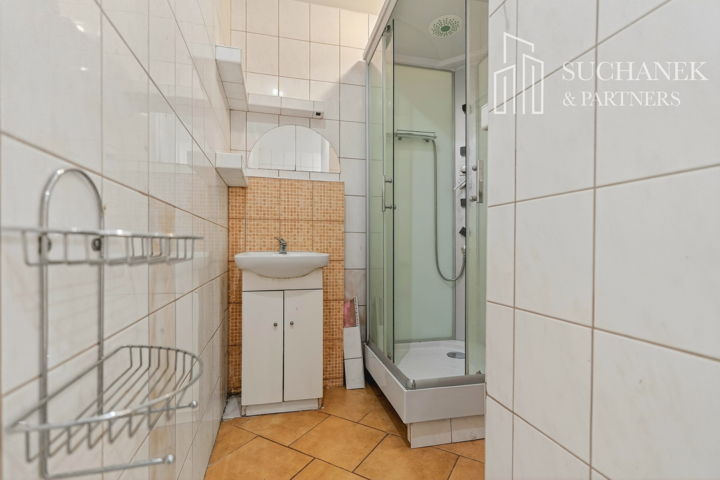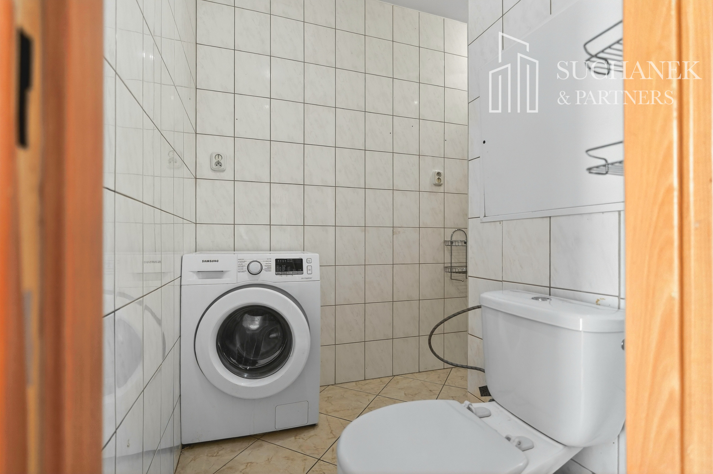Druhá časť bytu tvorí chodba, kúpeľňa spojená s WC so sprchovým kútom a ďalšia izba.