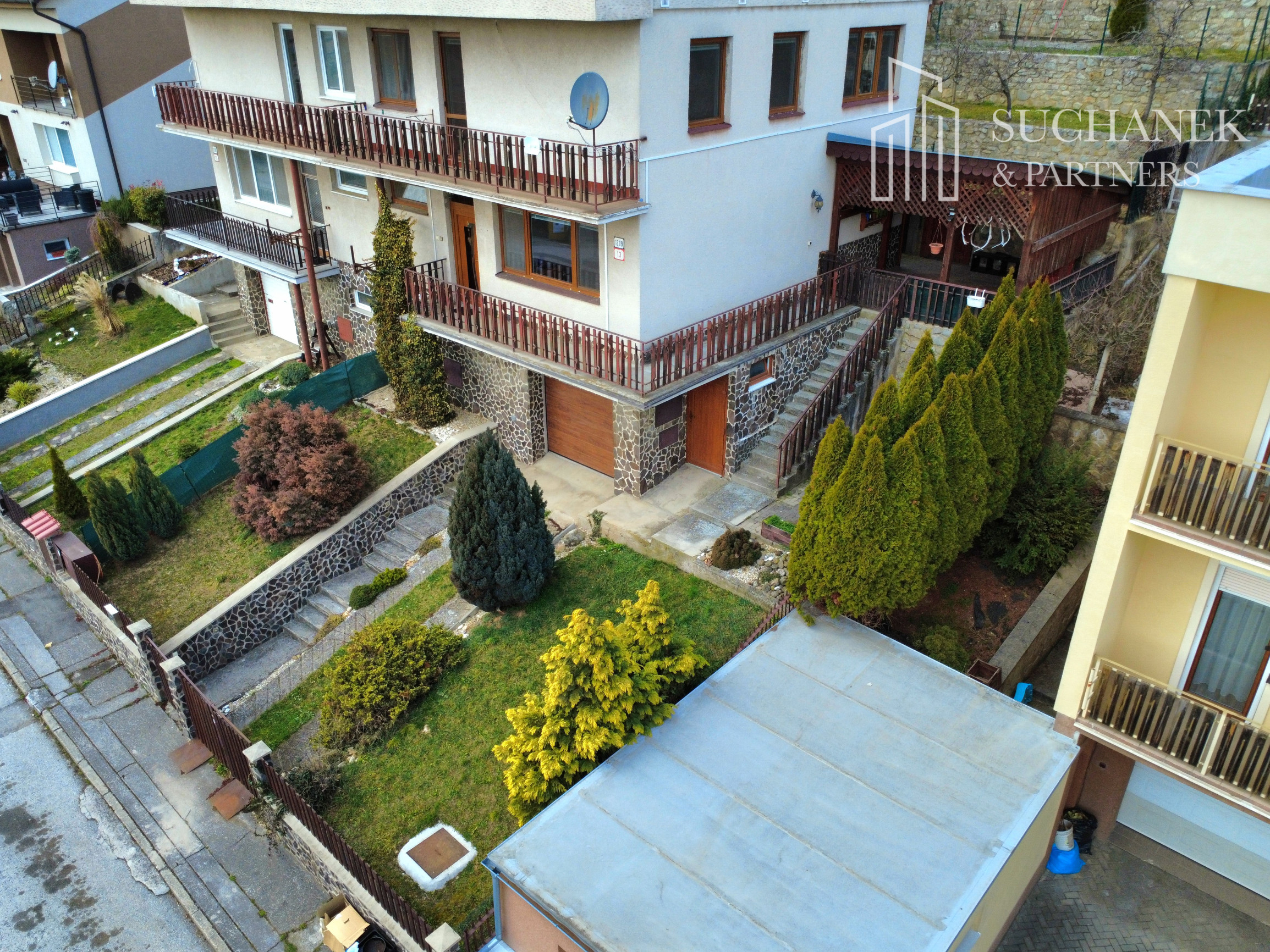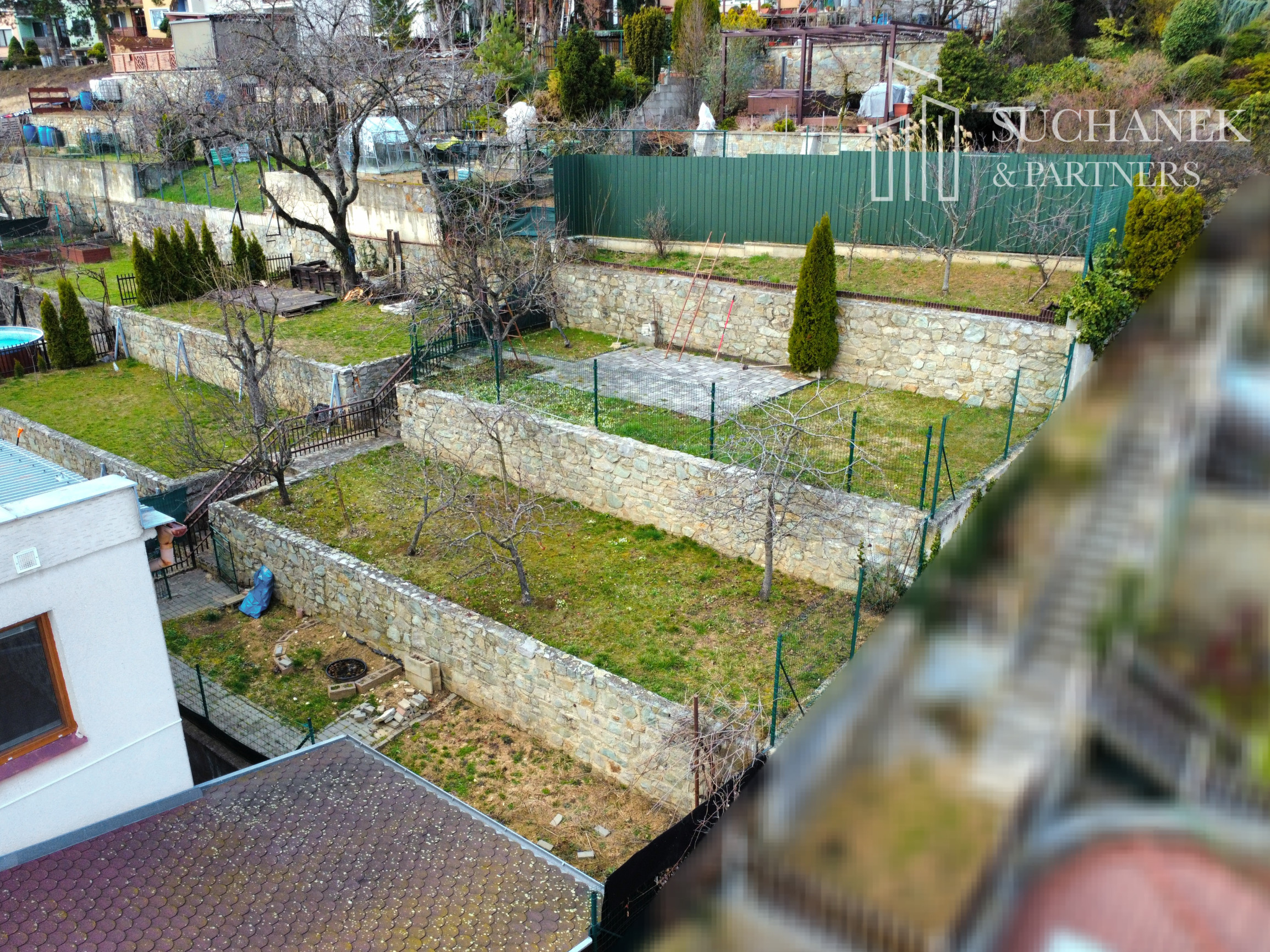 POZEMOK: Pozemok o rozlohe 400 m² je situovaný na svahu a rozdelený do kaskád, ktoré poskytujú praktickú a estetickú úpravu záhrady. Na jednotlivých úrovniach sú vysadené okrasné dreviny a ovocné stromy, ktoré dodávajú priestoru šarm a súkromie. Vydláždené plochy sú pripravené na inštaláciu bazéna alebo vírivky, čo umožňuje relaxáciu a zábavu priamo doma. Súčasťou pozemku je aj prístrešok s posedením, z ktorého sa otvára krásny výhľad na okolie – ideálne miesto na oddych či stretnutia s rodinou a priateľmi.