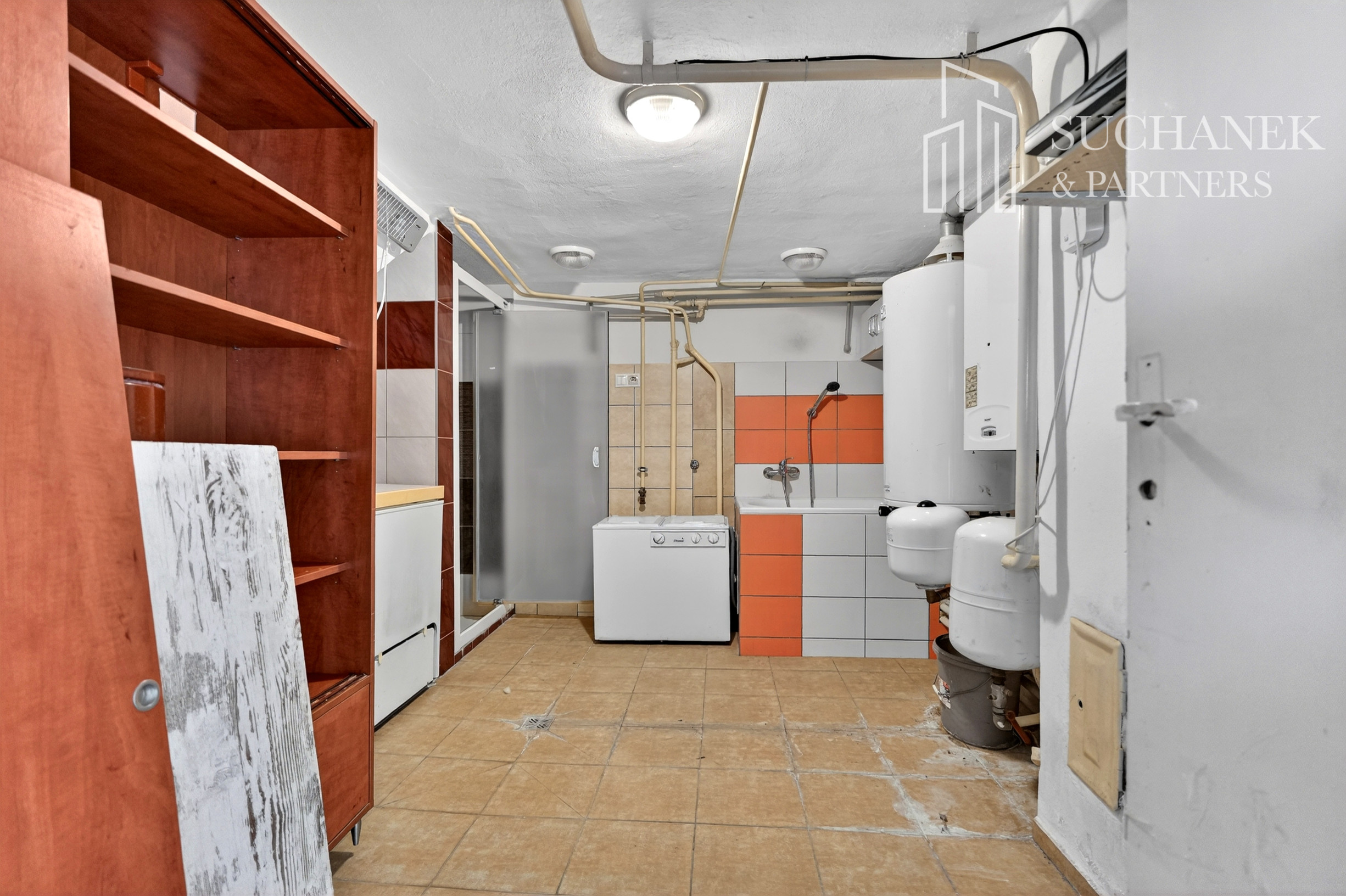 1. podlažie: na tomto podlaží sa nachádza garáž, technická miestnosť prepojená s pracovňou, v ktorej je k dispozícii vaňa a sprchový kút. Súčasťou je aj chodba so schodiskom vedúcim na vyššie podlažie.